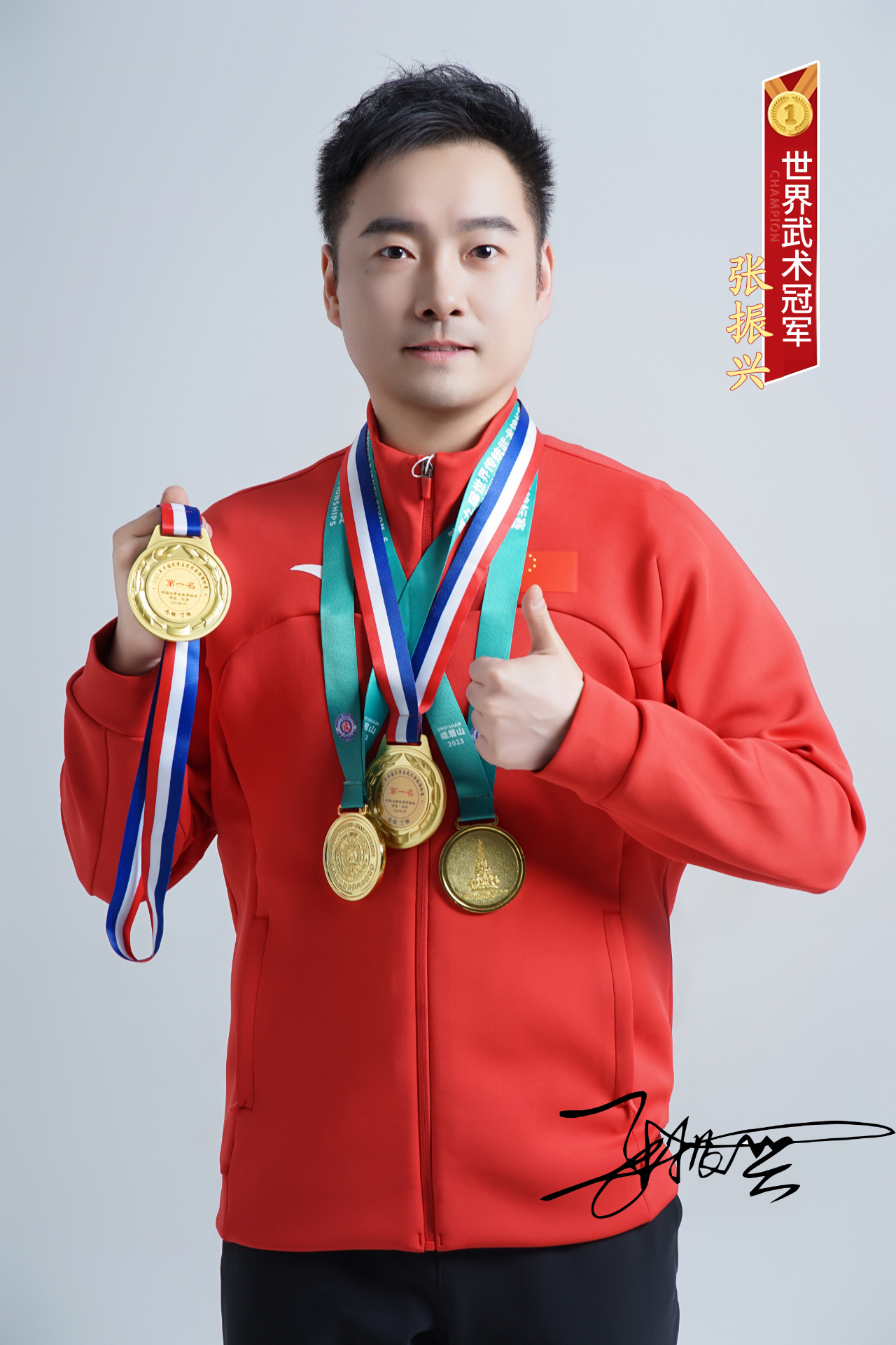 現(xiàn)役世界冠軍張振興,中共黨員,2018年被國家體育總局授予:中華人民共和國體育運(yùn)動(dòng)最高榮譽(yù)獎(jiǎng)?wù)隆M瓯恢醒腚娨暸_(tái)春節(jié)聯(lián)歡晚會(huì)邀請參加武術(shù)節(jié)目擔(dān)任主角。2019年全國第十一屆少數(shù)民族傳統(tǒng)體育運(yùn)動(dòng)會(huì)首金獲得者,同年榮獲河南省人民政府嘉獎(jiǎng);2019年榮獲河南?。ǜ袆?dòng)中原)年度十佳教育人物稱號,成為新一代陳氏太極拳傳承人,現(xiàn)任河南省太極拳隊(duì)教練。大滿貫獲得者,國際級運(yùn)動(dòng)健將,世界武術(shù)錦標(biāo)賽雙料冠軍,蟬聯(lián)全國武術(shù)套路冠軍賽陳式太極拳項(xiàng)目11連冠。共獲得世界錦標(biāo)賽冠軍2次,亞洲冠軍2次,全國冠軍50余次,多次參加中國武術(shù)代表團(tuán)出訪多個(gè)國家,傳播中國傳統(tǒng)文化。
